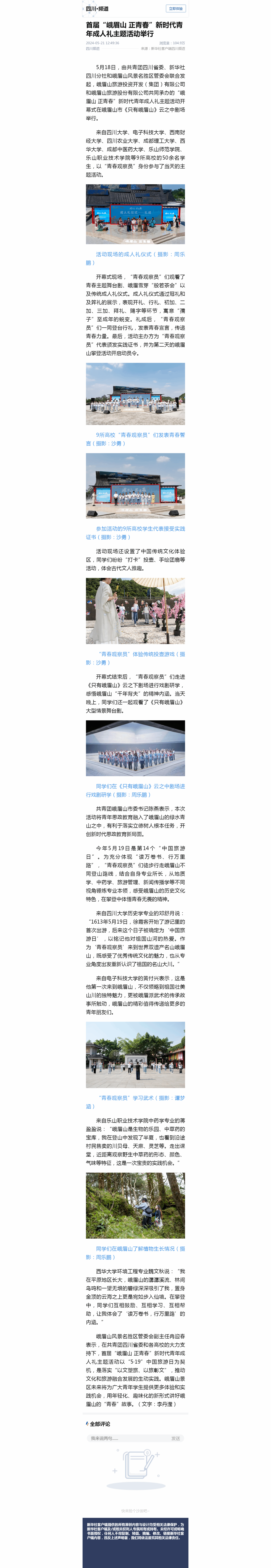 新华社四川频道:首届“峨眉山 正青春”新时代青年成人礼主题活动举行