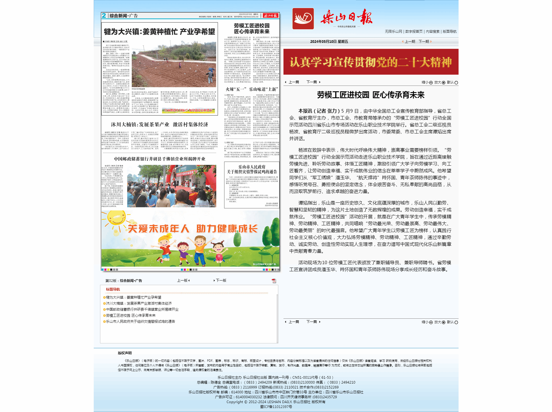 《乐山日报》劳模工匠进校园 匠心传承育未来