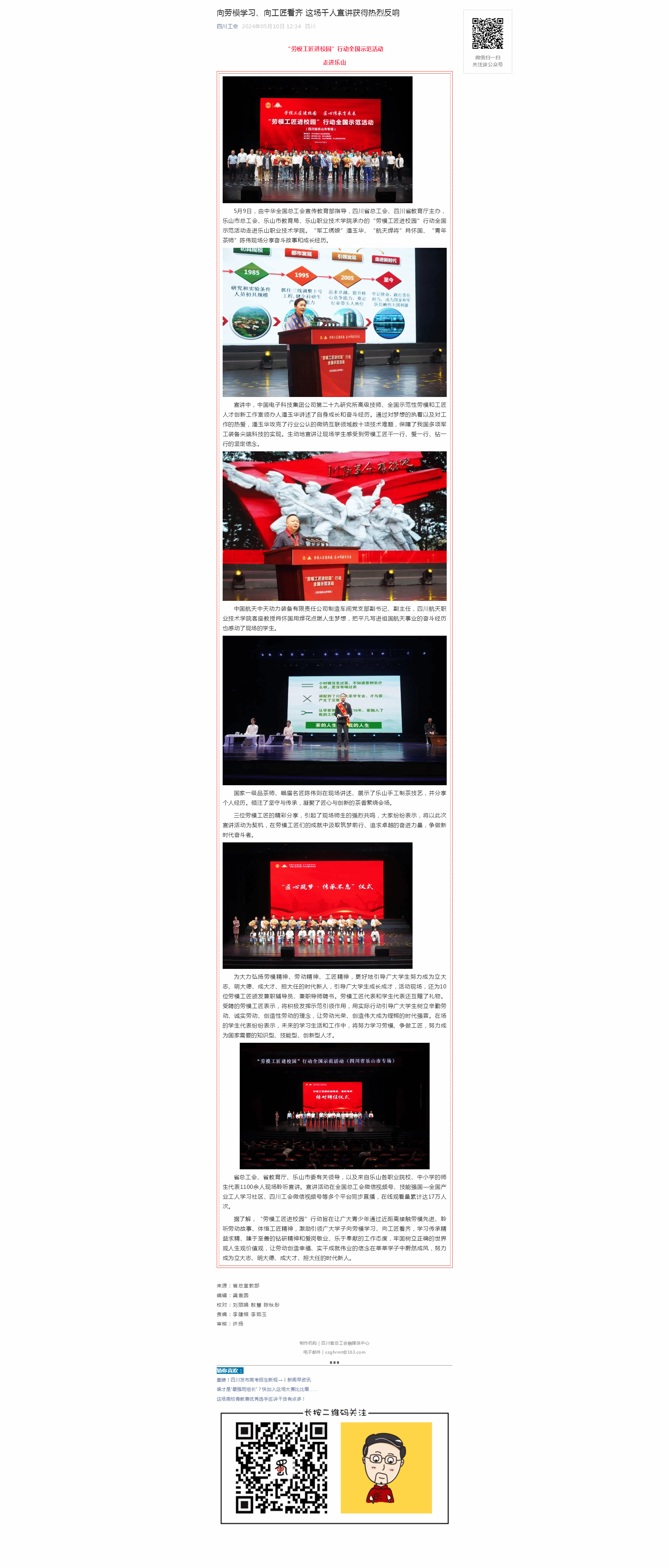 《乐山日报》劳模工匠进校园 匠心传承育未来