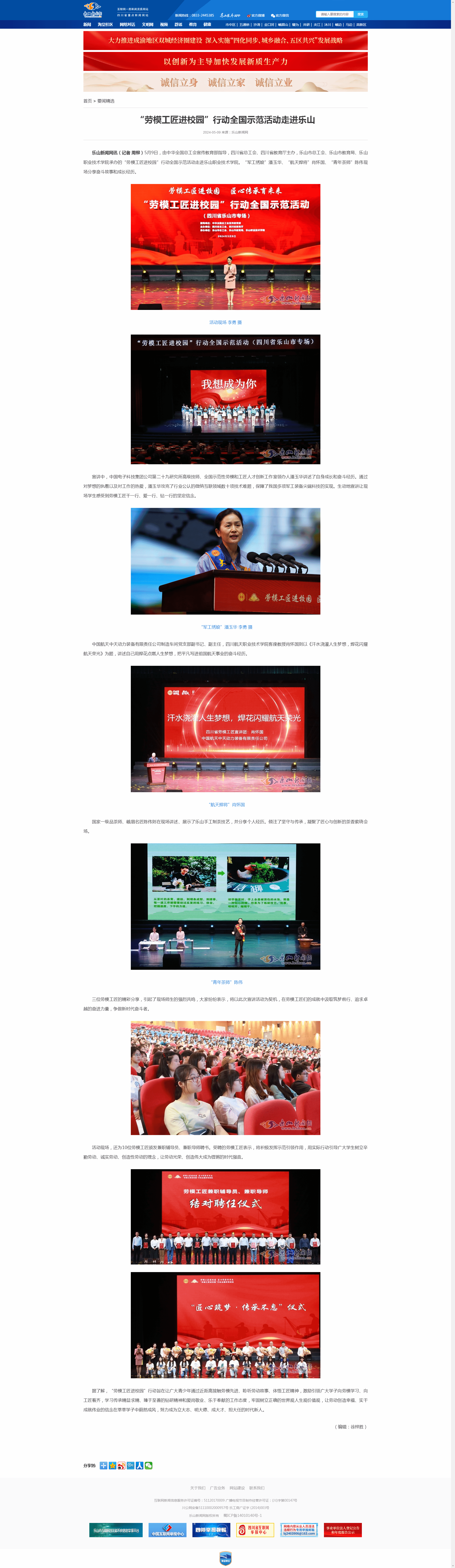 乐山新闻网:“劳模工匠进校园”行动全国示范活动走进乐山