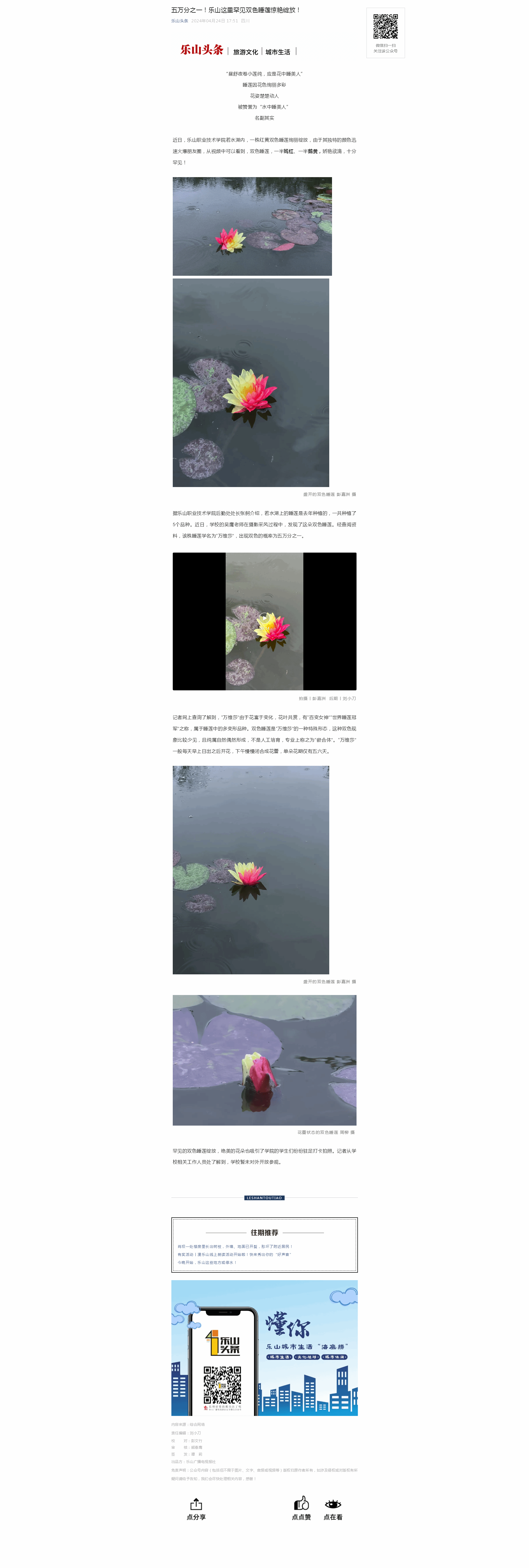 乐山发布:五万分之一的幸运!乐山惊现罕见双色睡莲