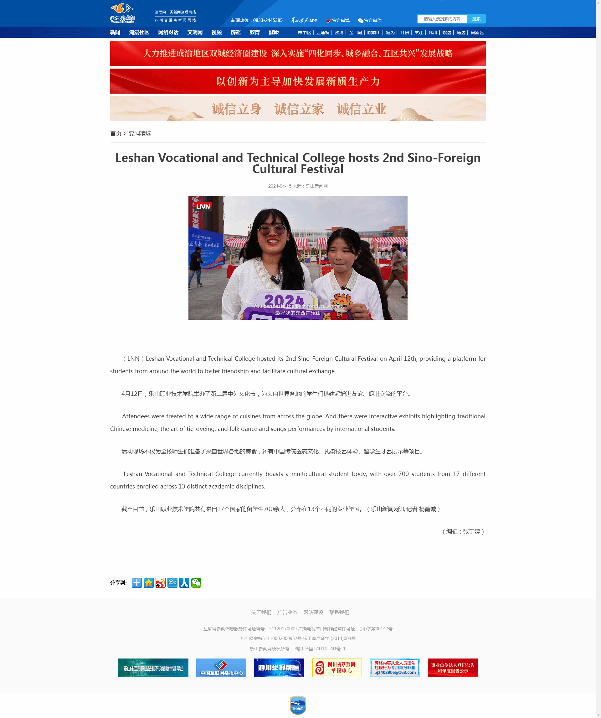 乐山新闻网:Leshan Vocational and Technical College hosts 2nd Sino-Foreign Cultu