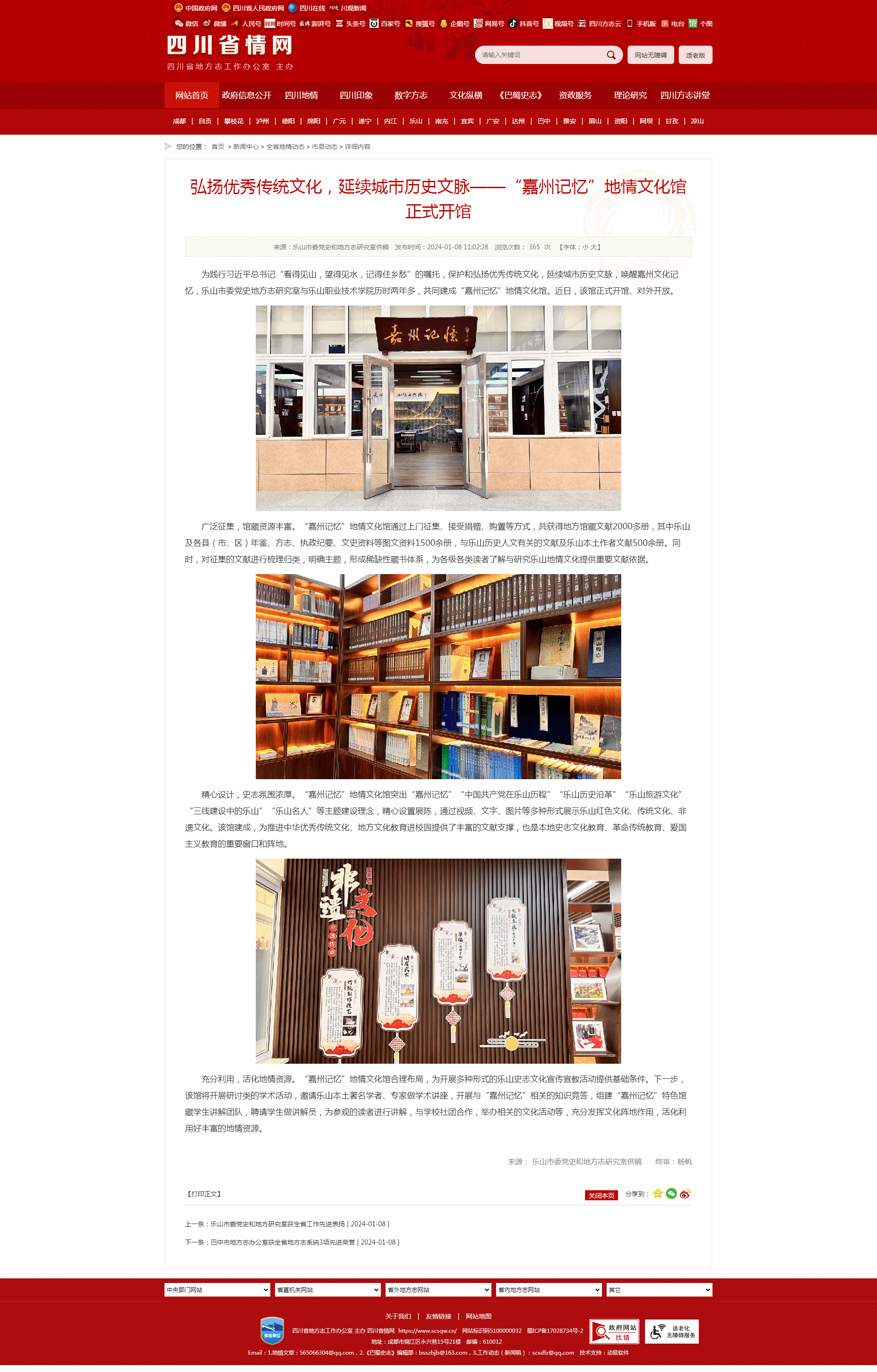 四川省情网:弘扬优秀传统文化,延续城市历史文脉——“嘉州记忆”地情文化馆正式开馆