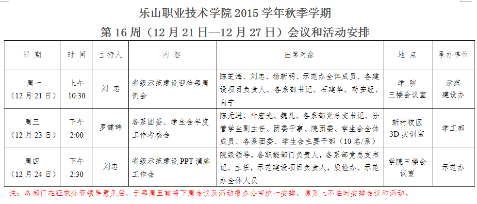 第16周(12月21日-12月27日)会议和活动安排