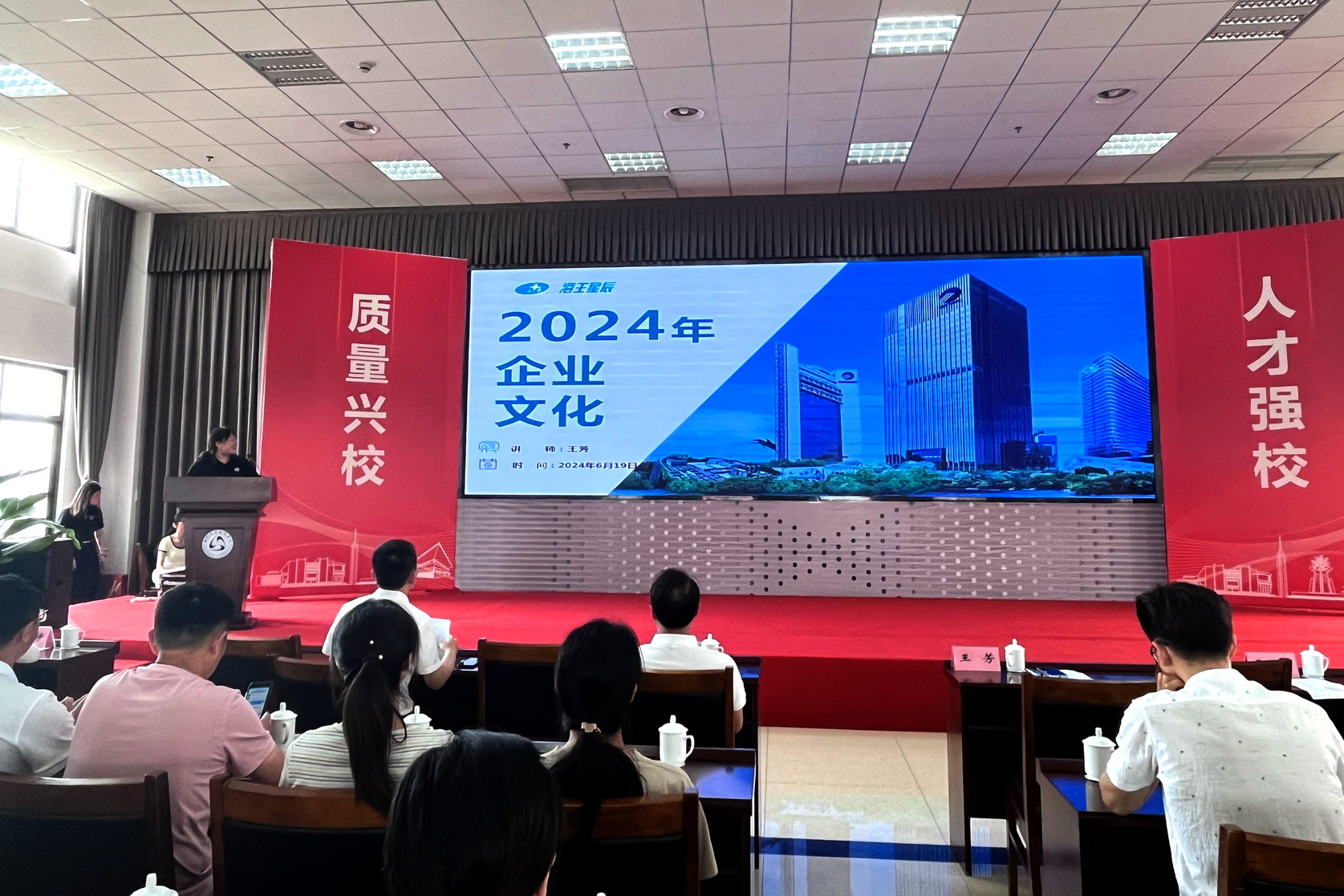 仪式后,进行了开班第一课。王芳就海王星辰集团的企业文化、发展历程、业务范围等进行了介绍。海王星辰总部信息中心总监李伟以“数字化在医药零售行业的应用”为题为大家进行了数字素养与技能提升的线上培训,让大家深刻感受到数字化在未来医药零售行业领域的重要作用。