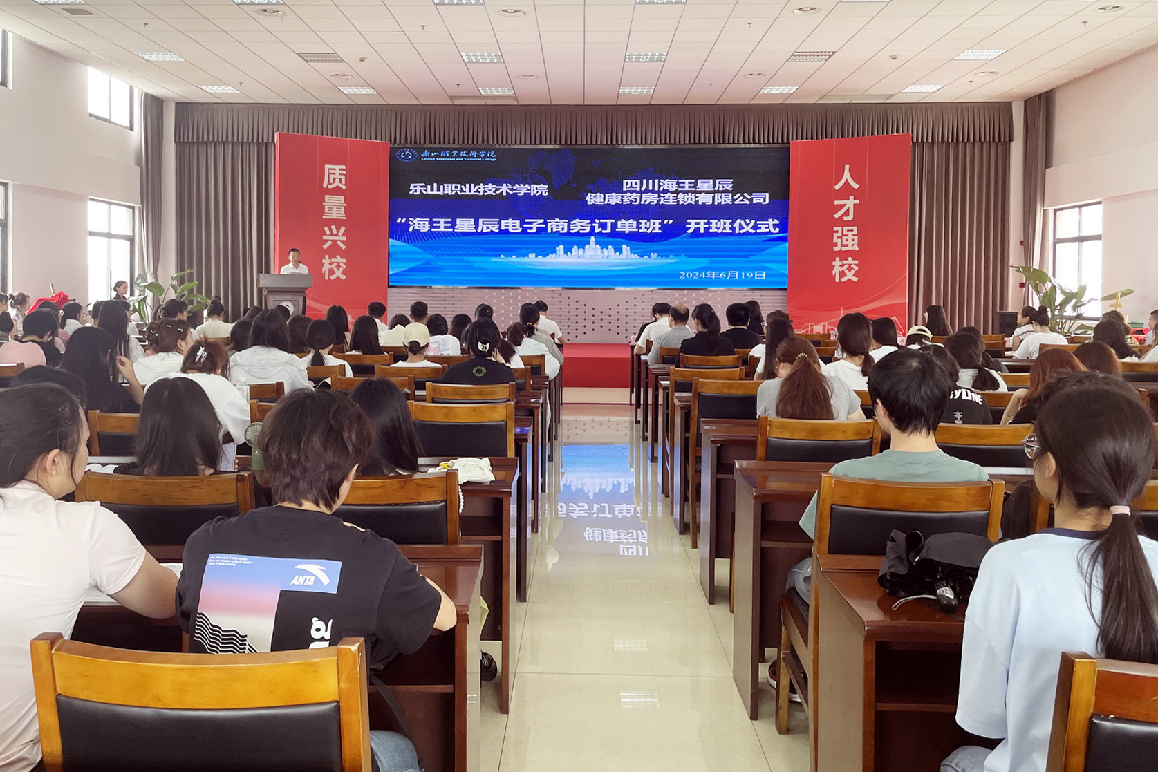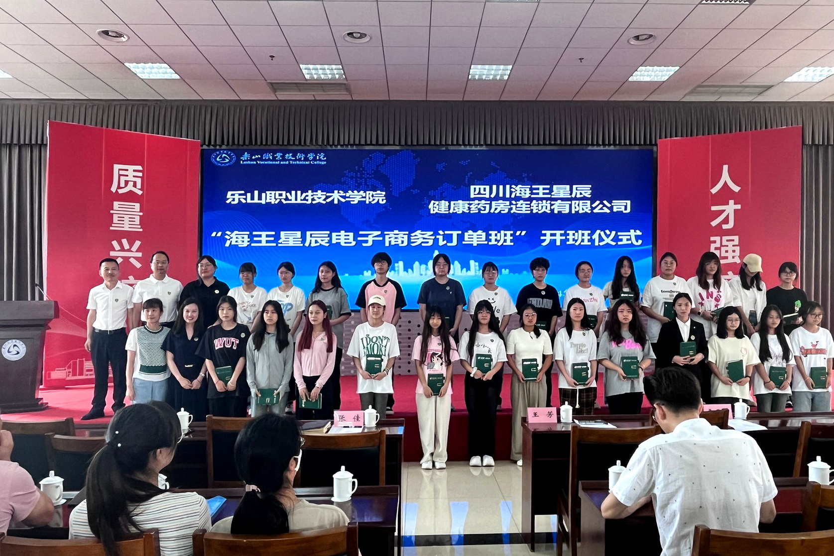 生物医药学院全体教师,“海王星辰电子商务班”和药品经营与管理专业全体学生共计130余人参加了开班仪式。