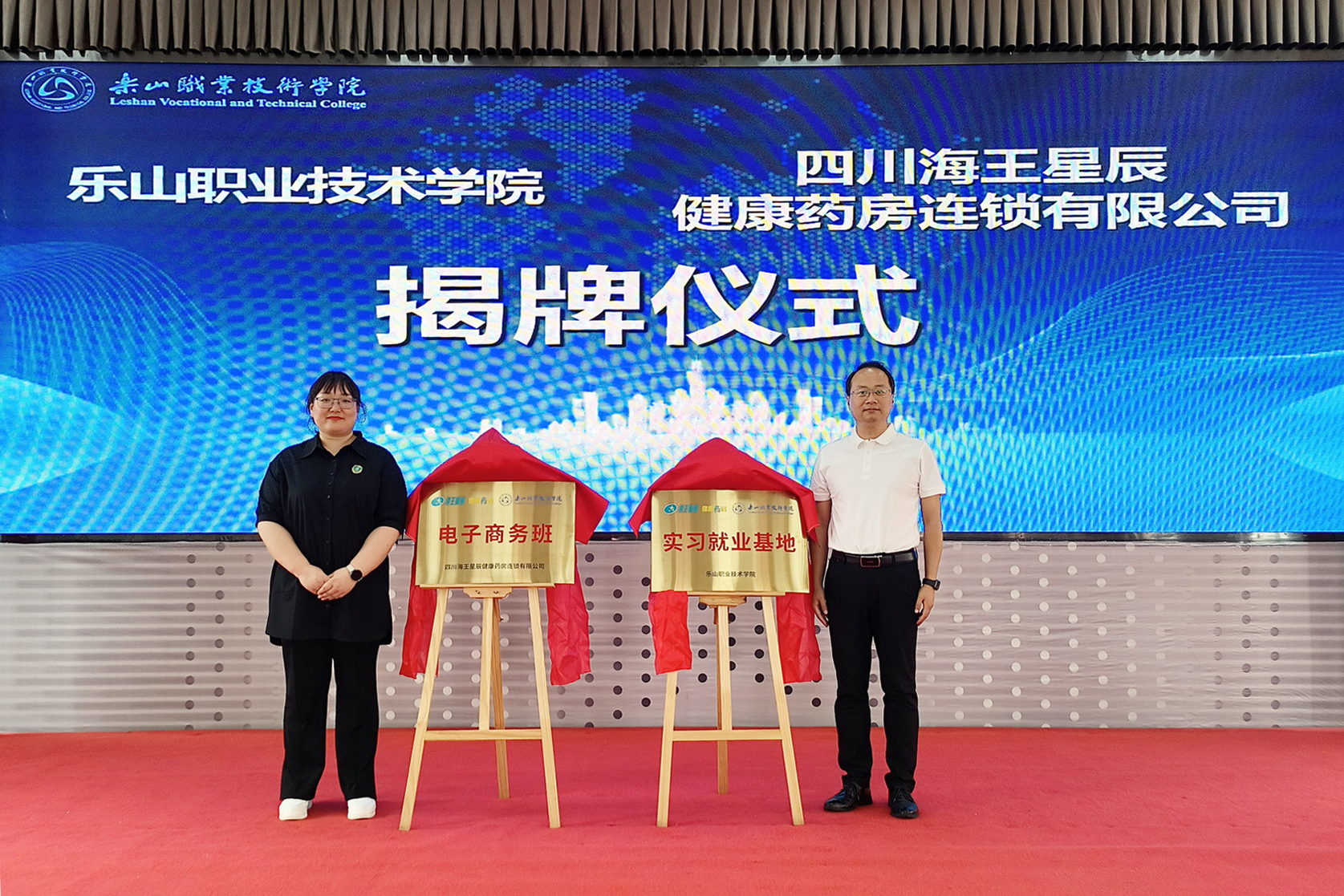 开班仪式上,张佳和王芳相共同为“海王星辰电子商务班”和“乐山职业技术校外实践教学基地”揭牌,为“海王星辰电子商务班”学员授予班徽和定制笔记本。BV伟德官方网站毕业生、海王星辰优秀员工林静和“海王星辰电子商务班”学生代表汪怡莲作了发言。