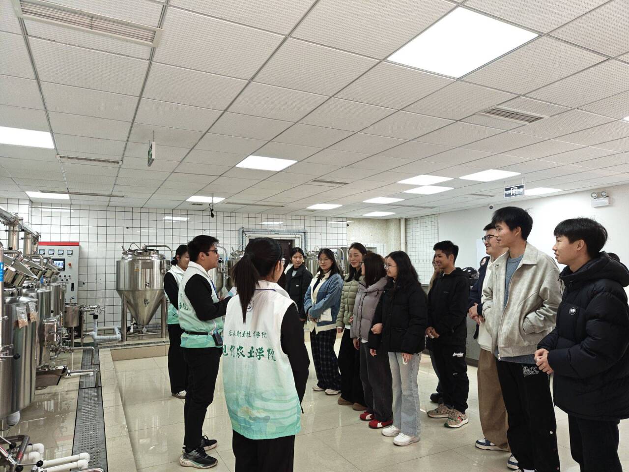 活动期间,同步开展了啤酒酿造科普宣讲。由农产品加工与质量检测、食品检验检测技术专业的同学组成科普小组,既溯源啤酒跨越六千年的文明脉络——从两河流域苏美尔人的古老酿造到中华“醴酒”的历史渊源,又聚焦现代精酿工艺核心,通过微缩版“三锅两槽”设备实景演示,详解麦芽、酒花、酵母、水的纯净原料搭配与“糖化—发酵—陈酿”的传统流程,同步分享低嘌呤益生菌发酵、融入川佛手等乐山特色农产品的创新研发方向,让师生在品鉴的同时深度领略啤酒文化的历史厚度与专业技术的创新活力。
