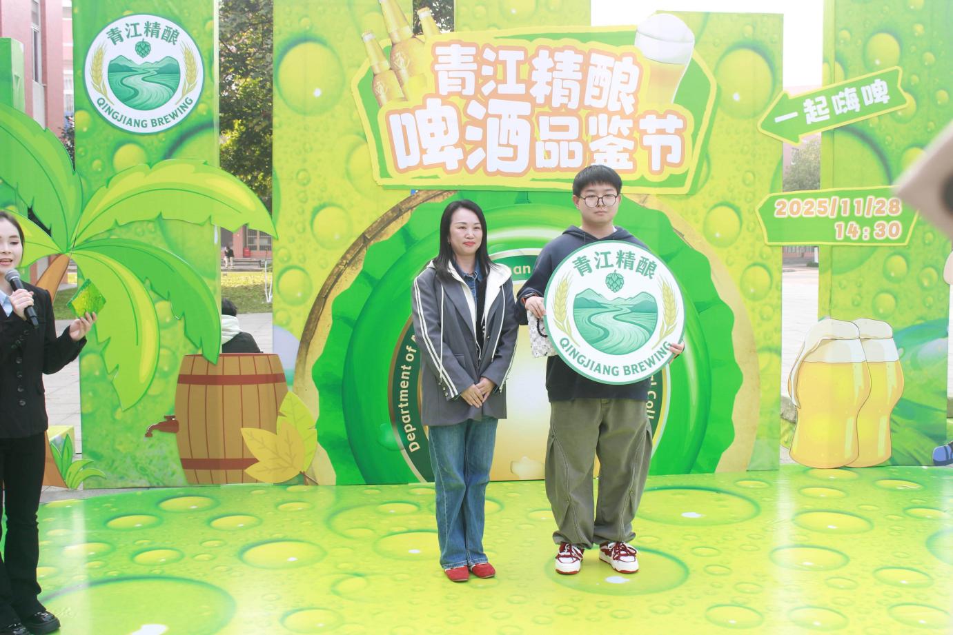 11月28日,由BV伟德官方网站现代农业学院主办的“青江精酿啤酒品鉴节”在青春文化广场成功举办。全校2000余名师生共同沉浸于麦芽醇香,见证产教融合与校园文化的双向赋能。学工部部长张勇、副部长黎缘,校团委副书记罗贤,素质教育学院副院长李澍,现代农业学院党总支书记、院长鲜凌瑾及项目指导老师等莅临现场指导。