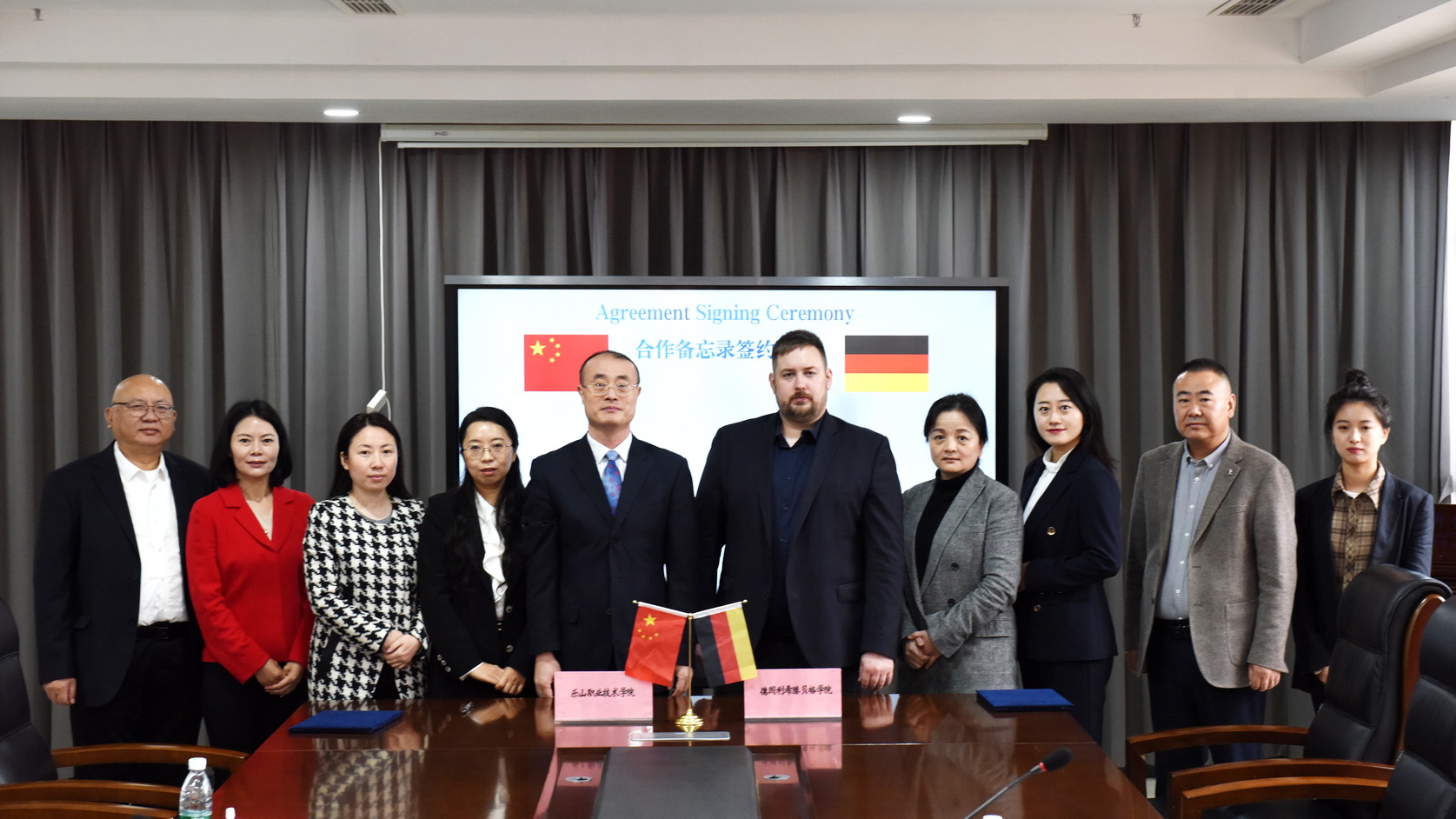 座谈结束后,刘忠和阿玛迪斯·维尔纳分别代表两校签署了护理专业3+0合作办学项目协议。德国代表团在周芹陪同下,参观了学校体育馆和医护实训室。