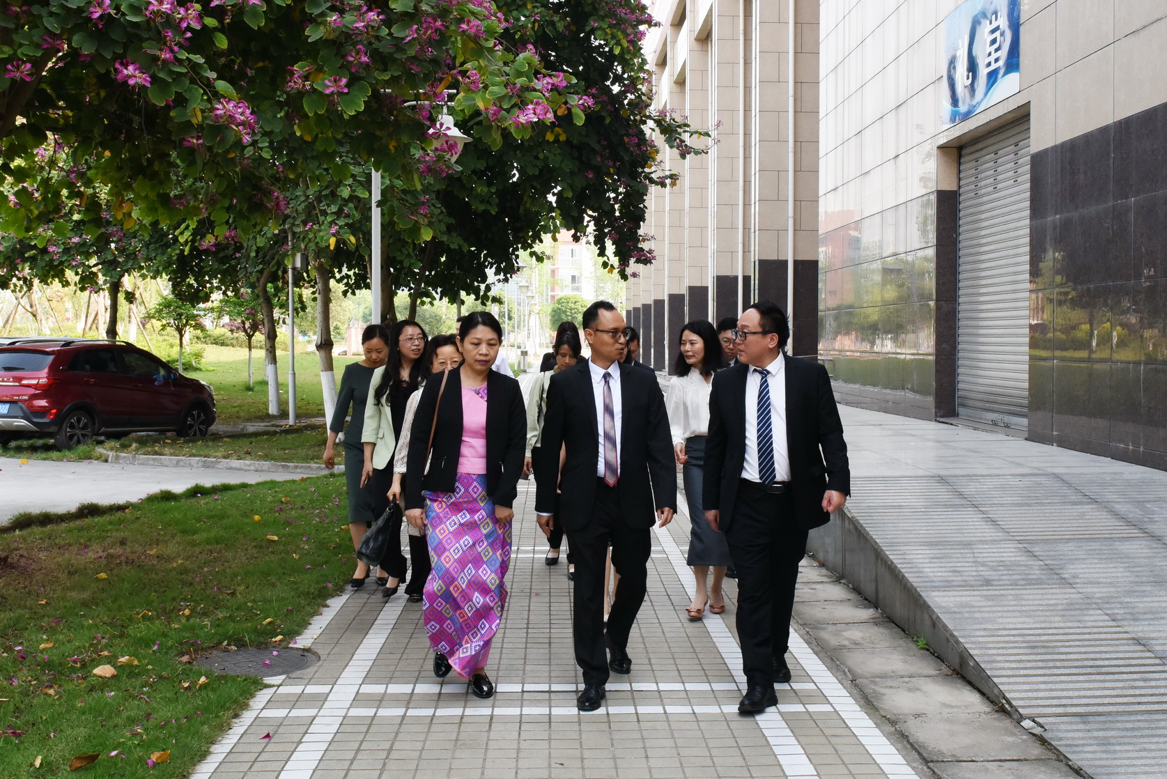 2023年4月17日上午,缅甸驻重庆总领事吕真才一行在乐山市经济合作和外事局副局长陈颖莉陪同下莅临学院参观访问。学院党委书记成定彬,党委委员、副院长周芹,党政办、国际学院相关负责人陪同参观校园。