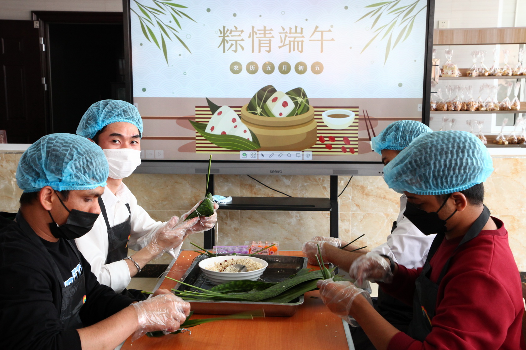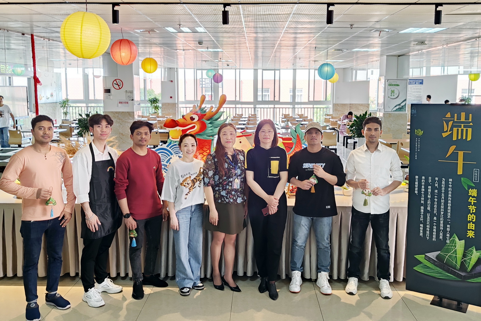 为了使学院中外师生感受传承中华民族传统文化,体验端午民俗, 6月1日下午,由学院工会主办,机关工会 、后勤处、教务处、学工部承办的“粽情端午”乐山职院中外师生中华传统文化体验活动在学院一食堂举行。