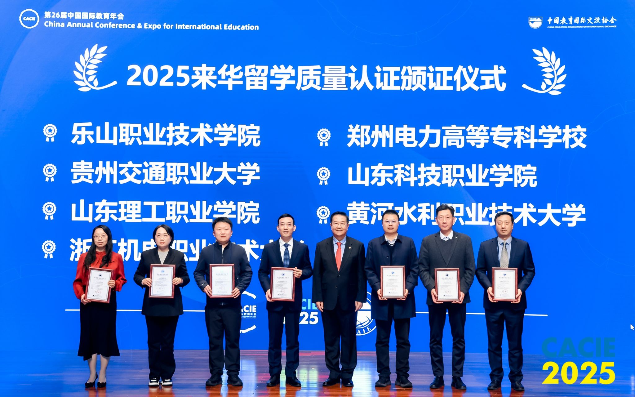 10月30日,第26届中国国际教育年会在北京召开。BV伟德官方网站党委委员、副校长周芹代表学校出席,并在平行论坛“育见中国:来华留学高质量发展国际研讨会”上接受中国教育国际交流协会会长刘利民授牌,学校正式通过《来华留学生高等职业教育质量认证标准》认证,评价等级B,有效期6年。