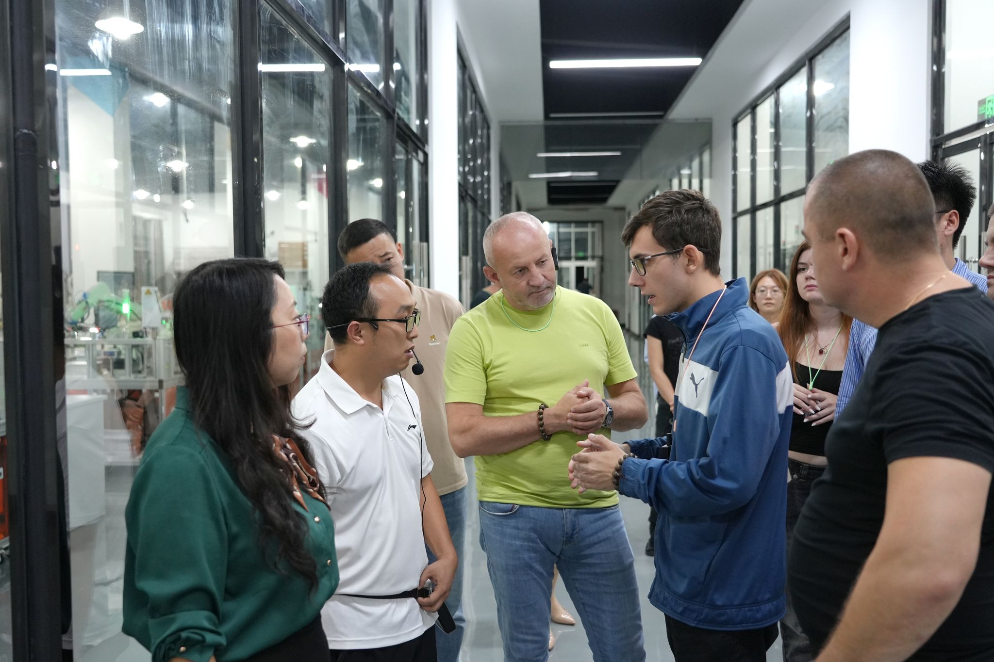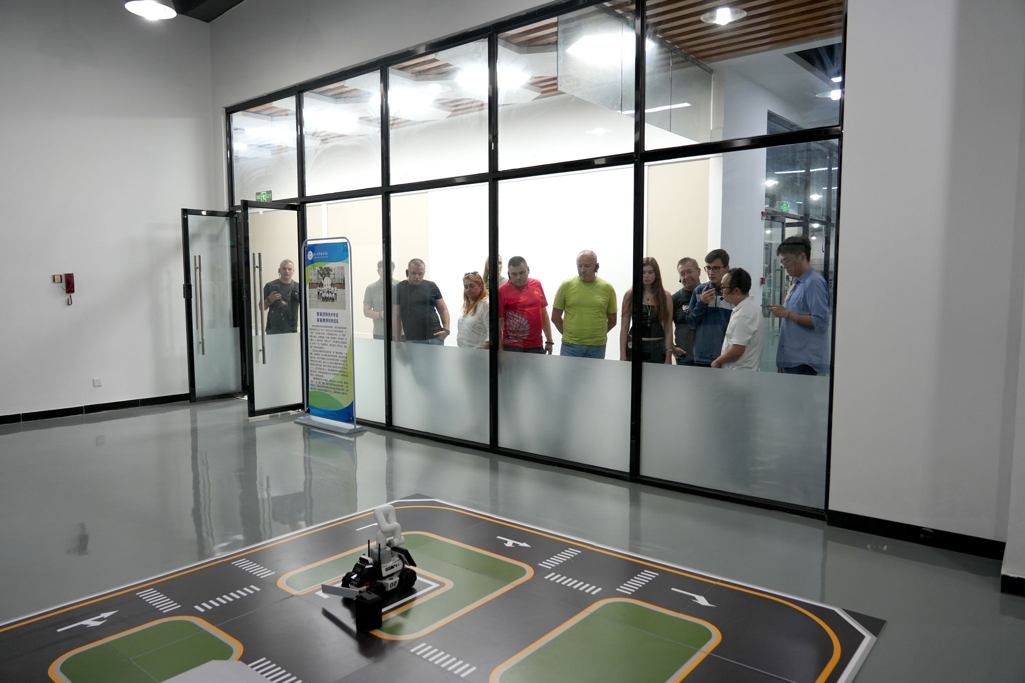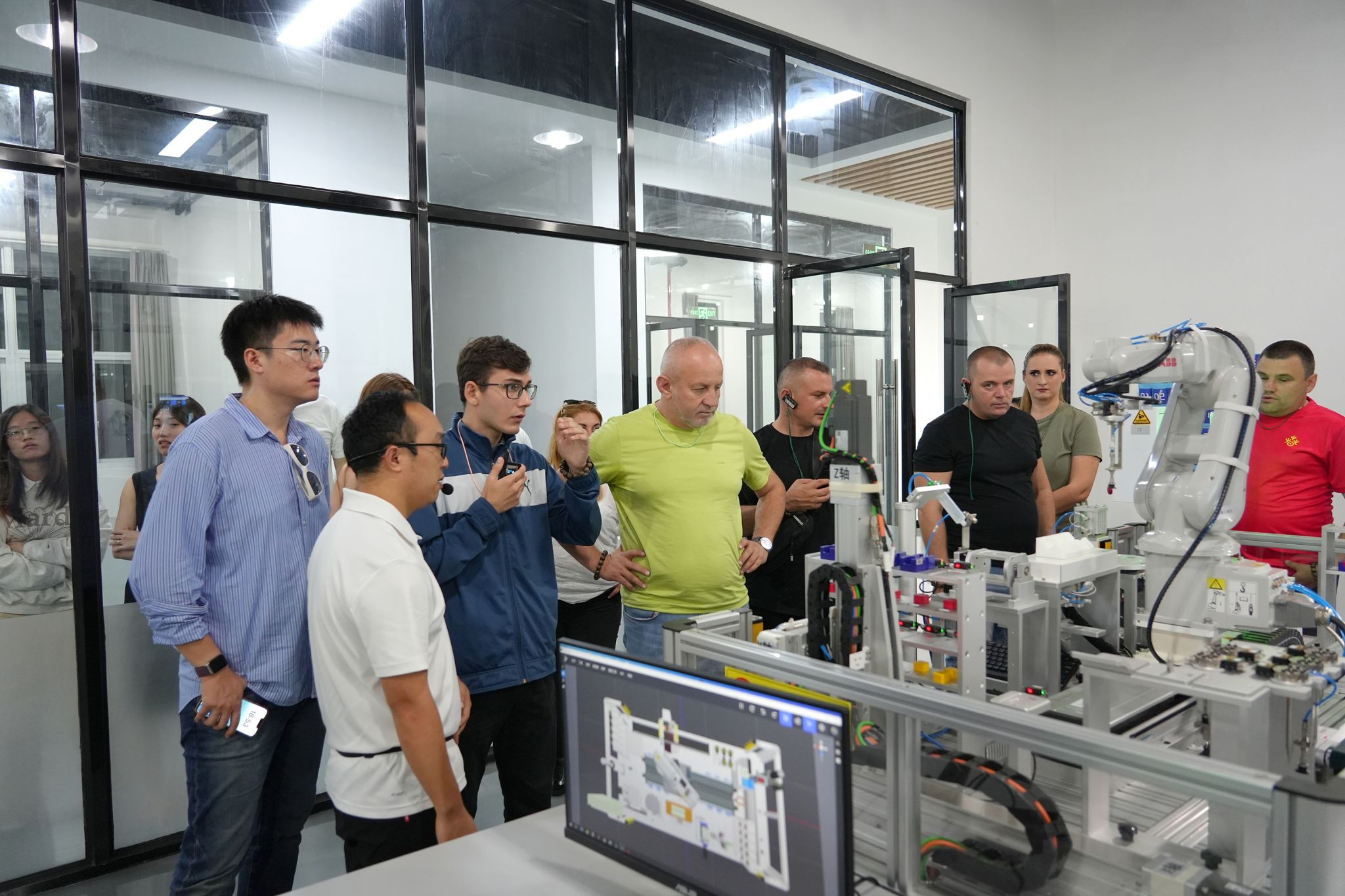 在4号实训工厂的机器人与智能控制实训中心,代表团参观了先进的工业机器人设备及智能化控制系统演示,对学院在智能制造领域的前沿教学设施和应用型人才培养能力留下了深刻印象。