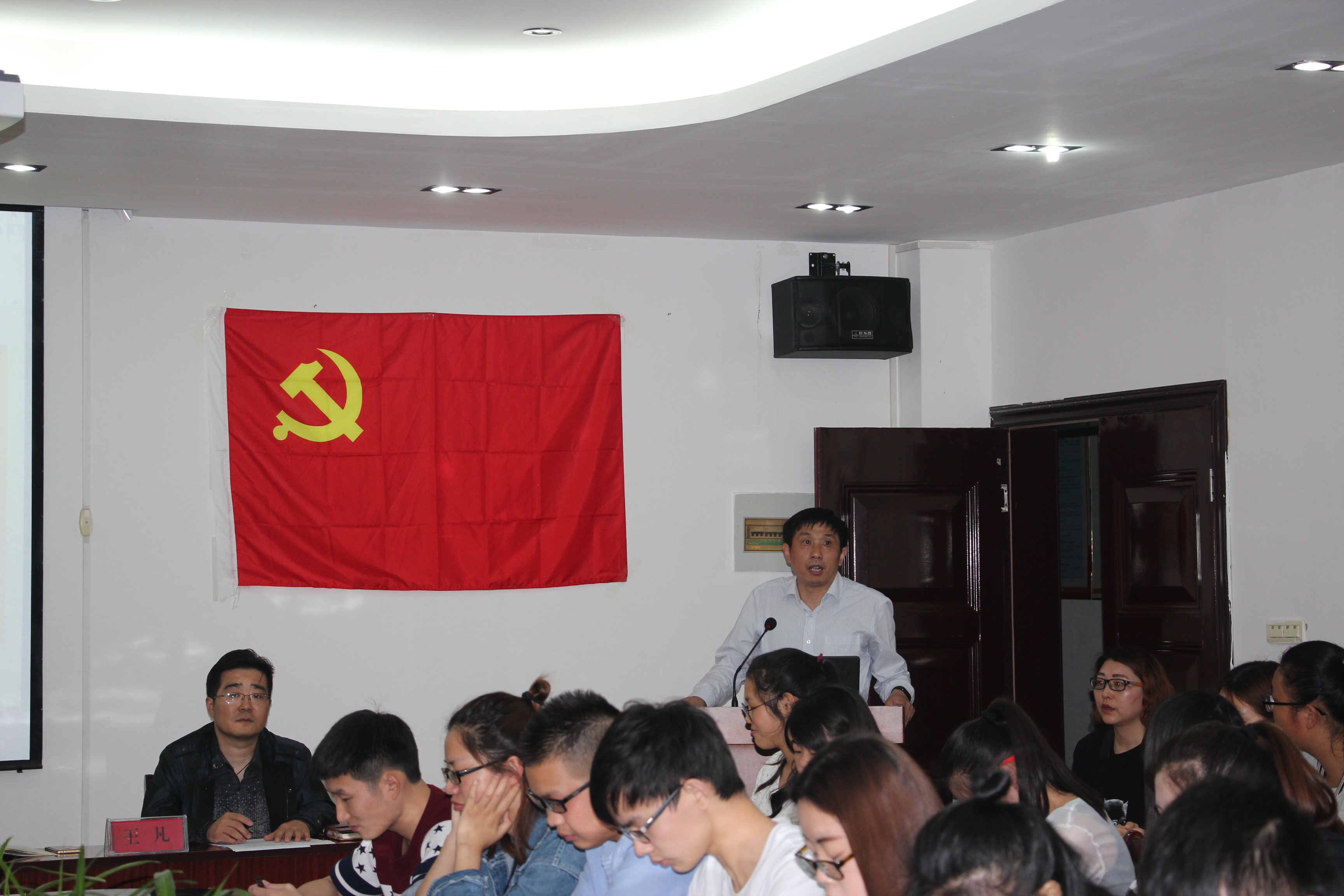 2016级研究生吕伟同学代表入党积极分子发言,承诺一定会认真学习,不虚度、不应付、不止步;积极努力,争取早日加入党组织。