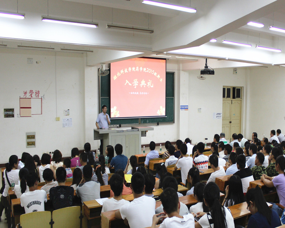 金秋送爽,丹桂飘香。9月13日晚,咸宁市必赢国际437官网2015级新生开学典礼在教3-201隆重举行。校长吴基良、副校长白育庭及研究生处、必赢国际437官网主要负责人、导师、新老生代表等出席典礼。