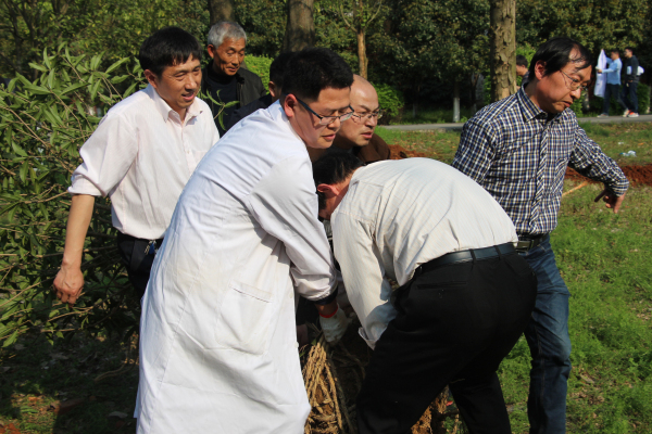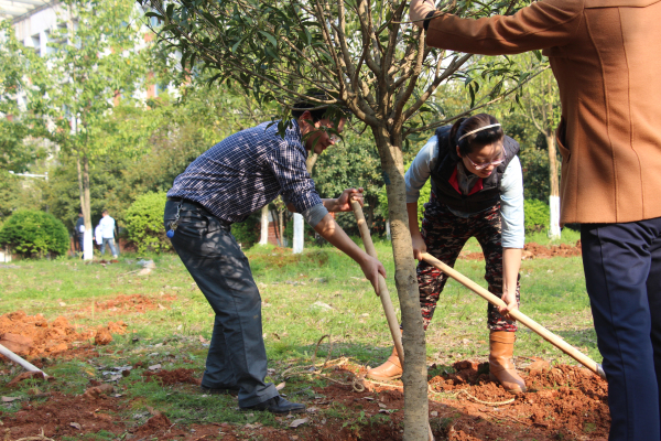 完成座谈会的议程后,药化药分党支部党员和民盟学院总支盟员在药学楼前空地一起开展了义务植树活动。在后勤集团绿化科同志的指导下,全体同志挖树坑、抬树苗、浇水,干得热火朝天,接连种下了桂花和红叶石楠树苗6颗。通过此次活动,增强了大家保护校园环境的责任感和环保意识。而且,有效加强了药化药分党支部党员和民盟盟员间的沟通和了解,提高了必赢国际437官网团队的协作能力,增强党的凝聚力。共同义务植树活动,种下的是树苗,播撒的是友谊,希望它们生根发芽、枝繁叶茂,收获和谐美好的果实。