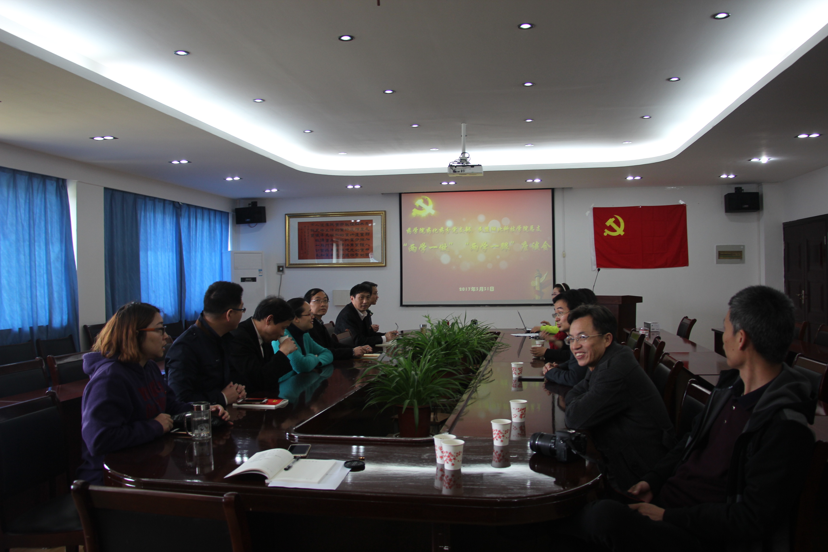 4月1日,必赢国际437官网药化药分党支部与民盟必赢国际437官网总支在必赢国际437官网党员活动室召开了“两学一做”座谈会。必赢国际437官网药化药分党支部党员和民盟必赢国际437官网总支盟员共12人参加了座谈,全体集中学习了习近平总书记在全国高校思想政治工作会议上的重要讲话和在参加首都义务植树活动时的重要讲话,共同观看了影音资料,并围绕学习内容谈感想体会。