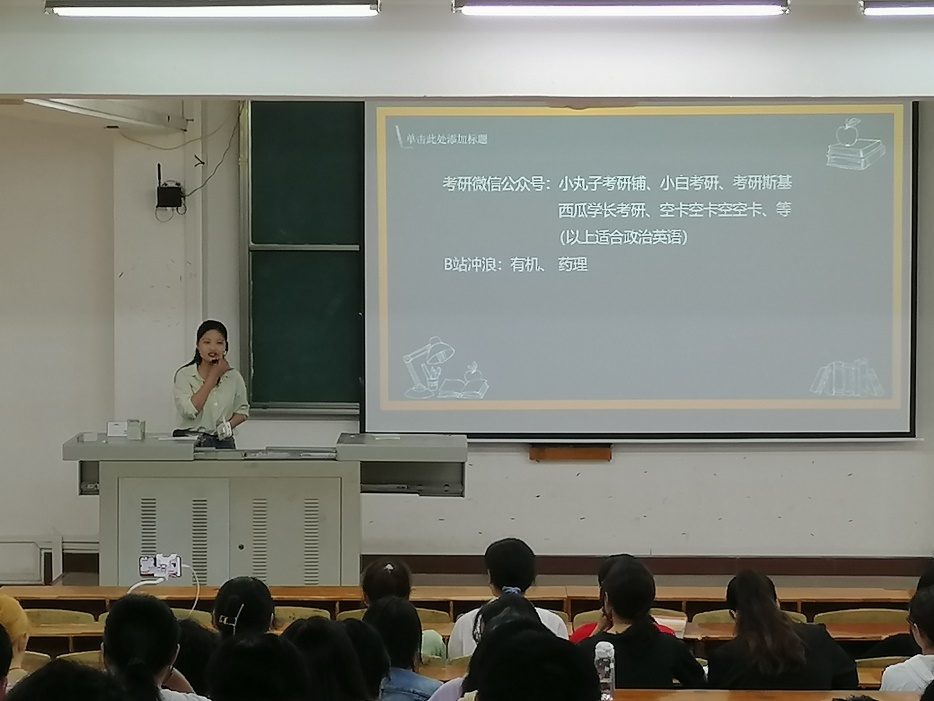 必赢国际437官网2021届毕业生共有22人考上研究生,此次分享会邀请到考上武汉理工大学的熊贝、沈阳药科大学的冯琪勋等六位同学进行经验分享。他们根据自身经验从择校、信息收集方法、备考经验和考研感受等方面为同学们带来详细的经验交流,引导同学们合理择校,同时告诉同学们应该如何应对考研疲倦期,如何疏导压力,以最佳状态迎接考试。为未来有考研想法的同学拨开迷雾,点亮考研道路的明灯。