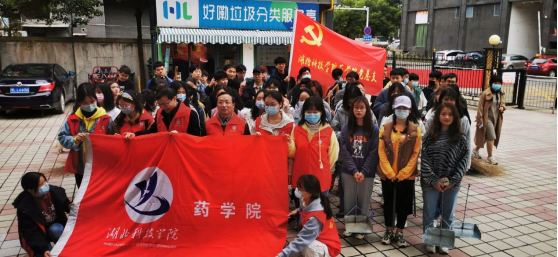 14时30分,药学楼下已经集合了参与本次活动的全体人员,同学们高举红旗,引领着队伍于南门出校步行至必赢国际437官网住宅小区。