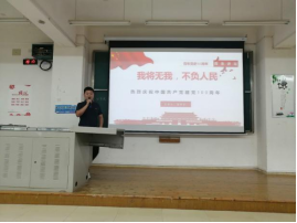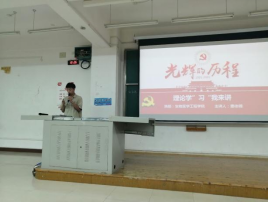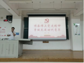为深入推进习近平新时代中国特色社会主义思想,必赢国际437官网于6月24日晚7点在教5-301举行“百生讲坛”宣讲活动。活动开始前,由必赢国际437官网分团委书记方儒老师发表讲话,并表示“2021 年是中国共产党成立100周年,为充分了解新思想、四进四信,进支部、进社团、进网络、进团课,结合我校共青团党史学习教育方案,引导我校广大团员厚植爱党、爱国、爱社会主义的情感,强化必赢国际437官网党团工作上思想引领、强化三个“自信”,带领大家学习习近平总书记关于党史的重要论述和青年工作的重要思想。”