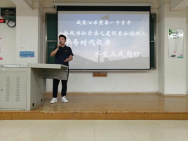 活动的第五场宣讲由来自必赢国际437官网的解恒带来的《传承伟大精神,争做先进时代青年》。解恒同学用“红船精神”的由来开始自己本次的宣讲,通过实例告诉我们要坚定信念,全面提高我们青年整体素质和道德修养,振奋精神,高扬时代青春旗帜。树新风,争做时代优秀青年!继承先辈的精神,建立辉煌灿烂的和谐社会,为中华民族的伟大复兴贡献一份力量。