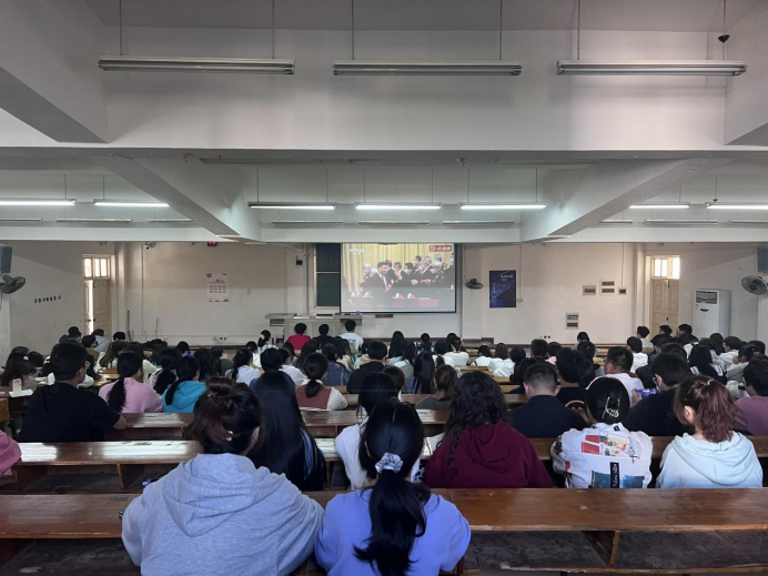 必赢国际437官网学生党员、青马班成员,团委学生会干部、入党积极分子及各班学生代表集中收看二十大开幕会