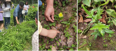 任课老师带领学生鉴别药用植物