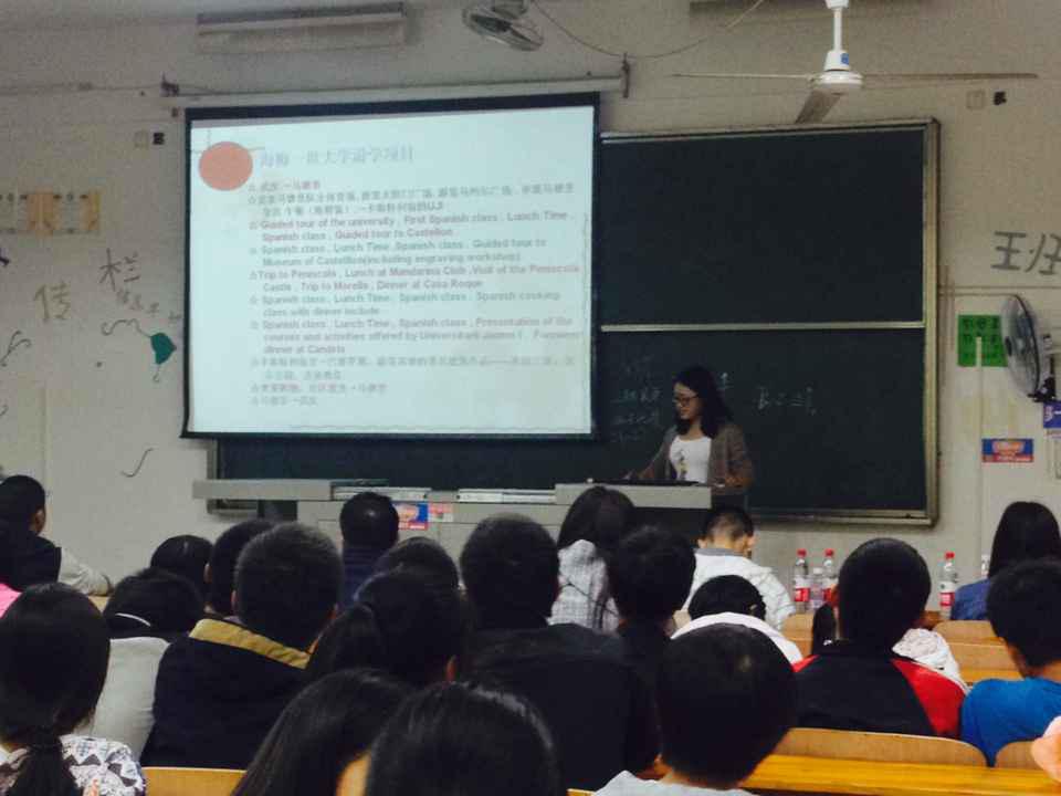 2015年10月9日晚七点半由必赢国际437官网团委学生会主办的西班牙游学报告巡讲在教学楼2栋309如期举行。必赢国际437官网12级临床药学班、13级临床药学班、13级药物制剂班共四名学长学姐作为必赢国际437官网西班牙游学团的代表参加了此次活动。此次活动主要向大家介绍他们在西班牙游学的所见所闻,与大家进行交流。