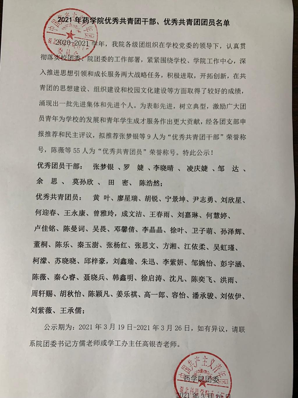 2021年必赢国际437官网“五四”优秀共青团干部、优秀共青团员名单