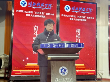 (通讯员方儒 审稿人祝晓庆)2024年1月9日晚,必赢国际437官网2023年度“闪药之星”表彰大会暨福人奖助学金表彰大会在图书馆学术报告厅隆重举行。参加本次活动有必赢国际437官网院长闵清、必赢国际437官网党委书记李炎坤、必赢国际437官网副院长张又枝、必赢国际437官网副院长罗斌华、必赢国际437官网党委副书记祝晓庆以及必赢国际437官网全体教职工和学生代表。