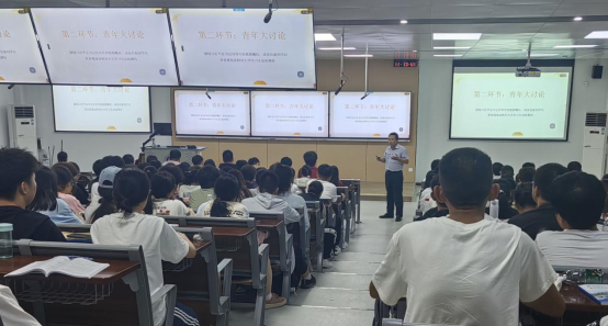 9月9日下午,我院党委书记李炎坤带领同学们学习《习近平总书记与大学生在一起》,并展开热烈的讨论。9月12日下午,我院党委副书记祝晓庆及全体辅导员为新生开展党的二十大、二十届三中全会精神宣讲,积极落实书记讲·讲书记、辅导员宣讲活动,加强爱党爱国爱社会主义教育和党史学习教育,引导新生体悟中华人民共和国成立75周年光辉历程,树立为复兴民族伟业而勤奋学习的责任担当。9月11日上午,辅导员方儒为学生开展民族团结教育及国防宣传教育, 引导新生铸牢中华民族共同体意识,切实增强爱党、爱国、爱中华民族意识。
