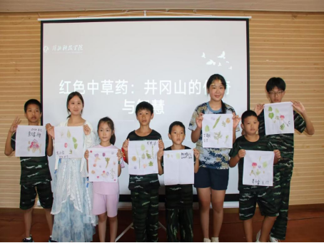 在最后的课题初步成果答辩会上,实践团汇报了调研期间,记录到的药用植物112种,采集植物标本81份。漂亮的植物与精美的标本吸引了评委老师的目光。汇报结束后,团中央井冈山中心的肖老师对我们的领队张志君老师说:“你们的课题很好,标本做的也用心,不过目前形式还较单一,建议将这些标本与红色文化结合起来,选定一个主题,把特色中药标本陈列在小井红军医院,或八角楼边的名医谢池香故居,后期你们团队再好好琢磨,完善课题成果,期待你们能再上井冈山,到时在中心给你们办一个成果展。”