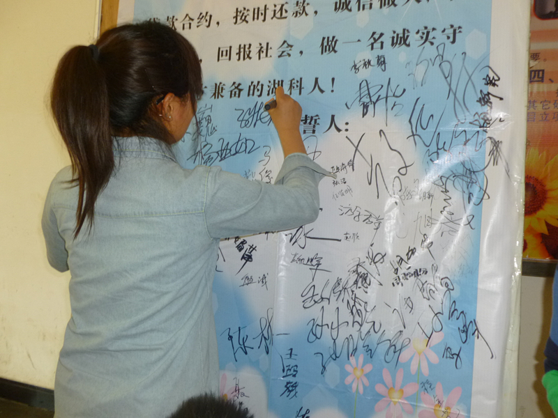 诚信是中华民族传承已久的美德,在当今科学技术高度发达,信息千变万化的社会里,诚信已不仅只是一种美德,而且在社会发展中起着重要的平衡作用。必赢国际437官网以“严格遵守国家规定,认真履行贷款合约,按时还款,诚信做人,早日成才,回报社会,做一名诚实守信、德才兼备的湖科人”为誓词,展开了一次诚信宣誓活动,全院生源地贷款学生集体宣誓和签名。