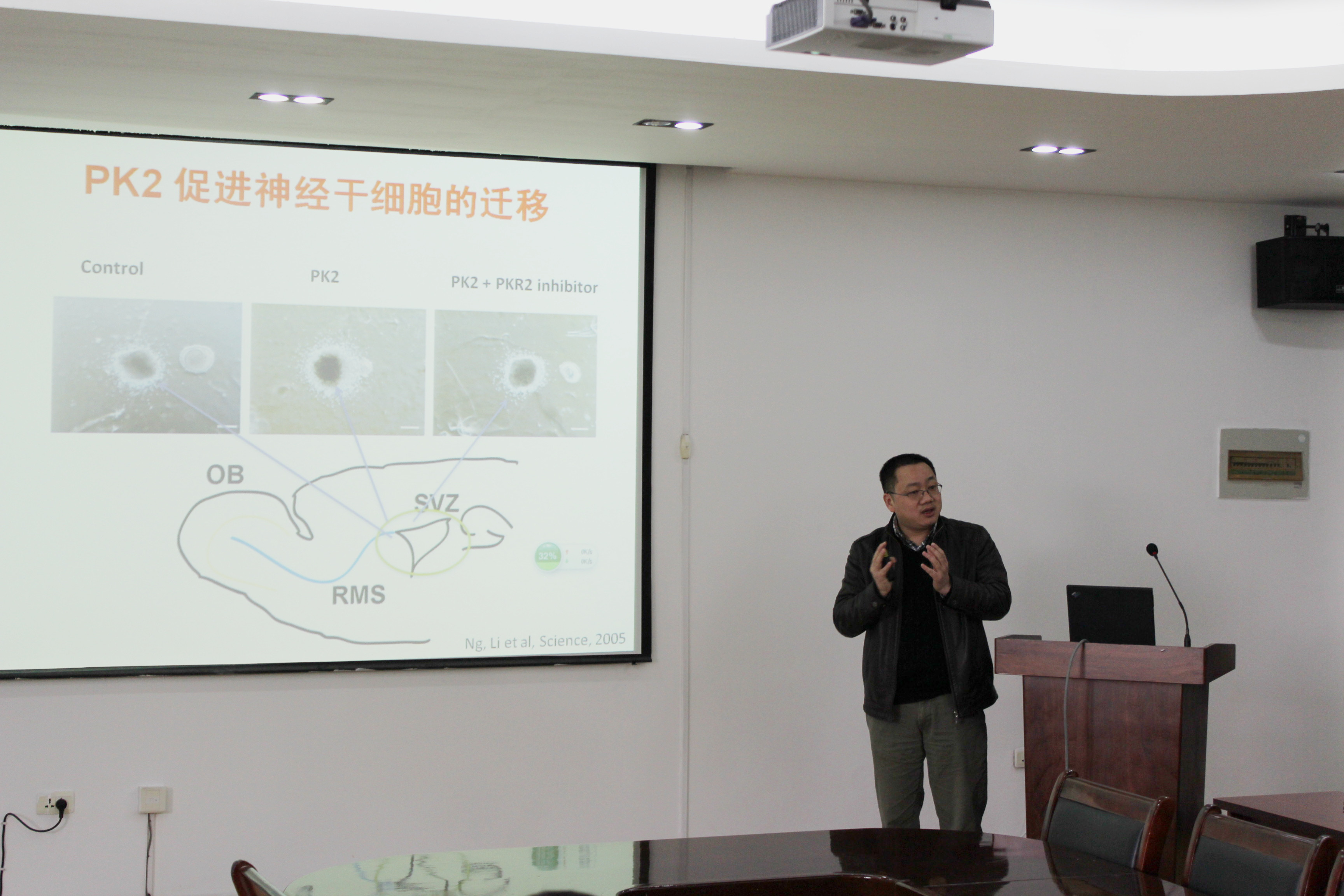 2015年4月9日 ,下午三点,来自中南大学的李家大教授莅临我校做了主题为“G蛋白偶联受体PKR1/2功能研究”的学术报告,必赢国际437官网院长黄胜堂、党支部书记闵清等领导和老师以及相关专业研究生参加了此次讲座。