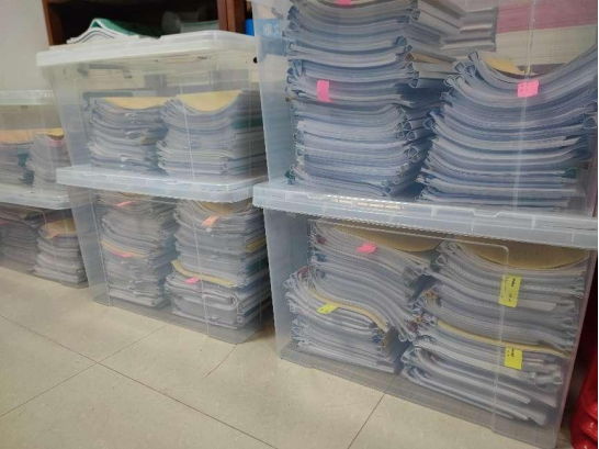 各论文答辩组秘书将本组毕业论文与答辩记录本收齐并初查论文问题,初步整改后移交教学办公室,与教学秘书双人清点,并再次核查有无疏漏,核查无误后按年限分类装箱妥善保存。学院领导和老师都高度重视这项工作,没有丝毫懈怠,领导积极指挥,老师积极执行与配合,力求把工作做到最好。