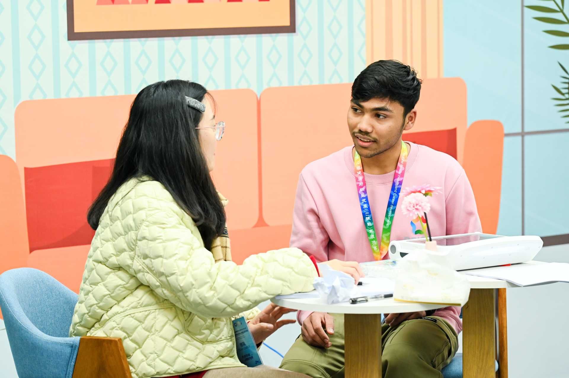 技能实际操作部分包含3个模块:第一模块竞赛任务为“心理健康互助过程”,考验选手“关系建立能力、倾听与觉察能力、捕捉敏感性信息能力、互助技术运用”等技能;第二模块竞赛任务为“发展与创新”,旨在评估选手“在助人过程中对相关问题的针对性、体现现代心理理念、方法与技术在心理健康领域的作用”等能力;第三模块竞赛任务为“问题解决”,主要考察选手“在互助过程中的条理性、思维的严密性和帮助同伴缓解存在问题的有效性”等能力。