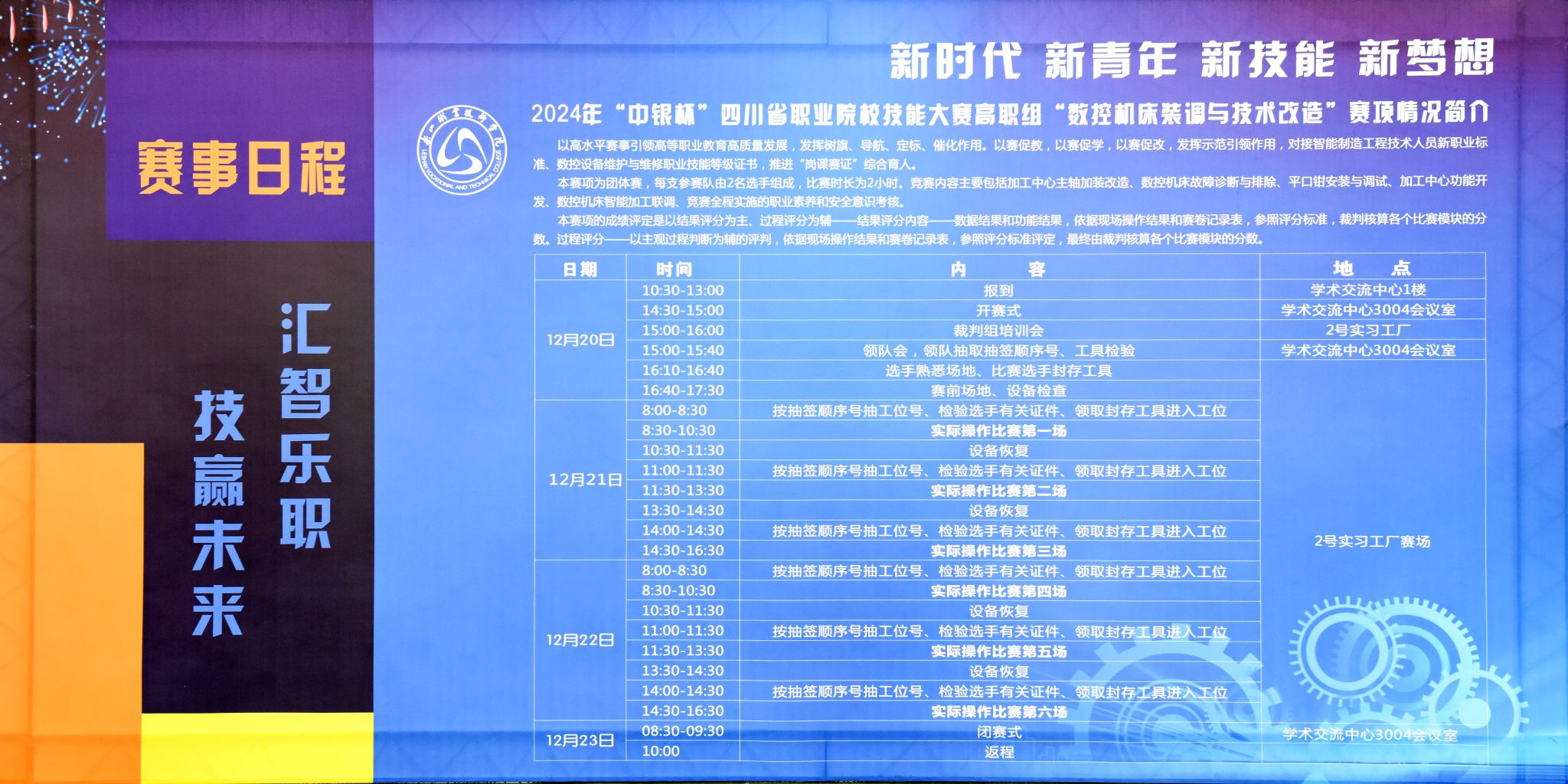12月20日-22日,由四川省教育厅主办的2024年“中银杯”四川省职业院校技能大赛数控机床装调与技术改造赛项在BV伟德官方网站举行,来自全省15所高职院校的42支参赛队的84名选手同台竞技。