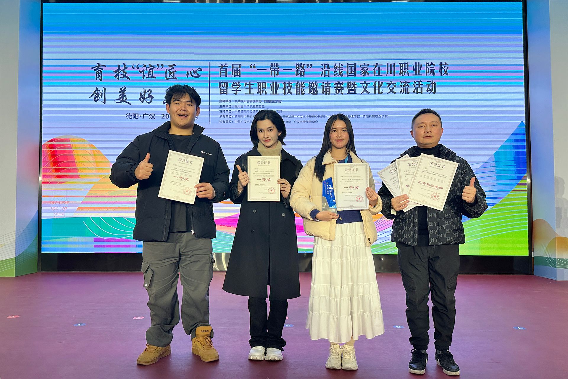 2024年12月10日,四川省首届“一带一路”国家在川职业院校留学生电子商务职业技能邀请赛在四川航天职业技术学院落幕。由数字经济管理学院的三名留学生范娜(老挝)、王伟欣(老挝)和卢明伟(印度尼西亚)组成的BV伟德官方网站代表队荣获一等奖,学校获得组织奖。