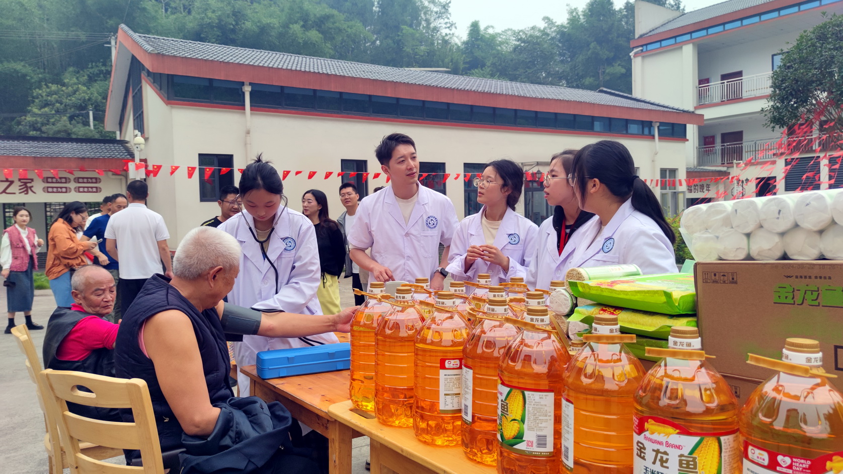 活动中,还为老人们送上了米面油等物资,祝愿他们幸福安康。
