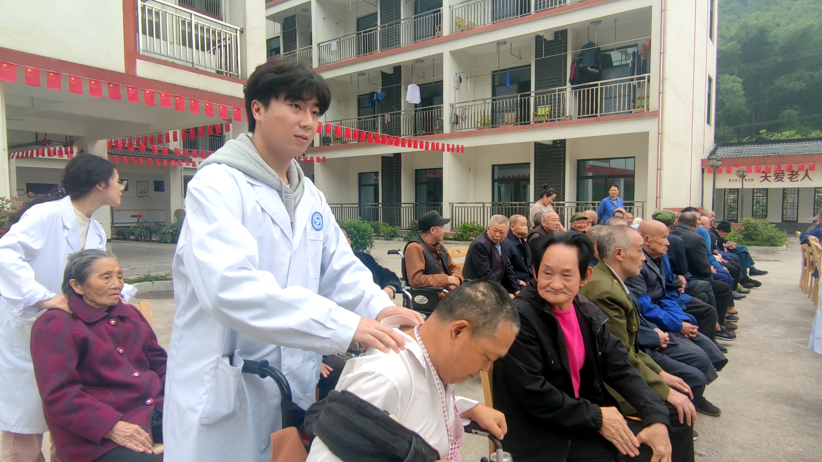 在敬老院,随处可见忙碌的学校师生的身影,他们与老人们热情聊天,关切询问他们的身体健康、饮食起居情况,解答老人们关于身体保健方面的疑问,并开展秋冬季健康知识宣讲和按摩保健服务;同时,还深入到食堂、宿舍、监控室等,对消防、食品、建筑、电路等方面详细检查,排查安全隐患。