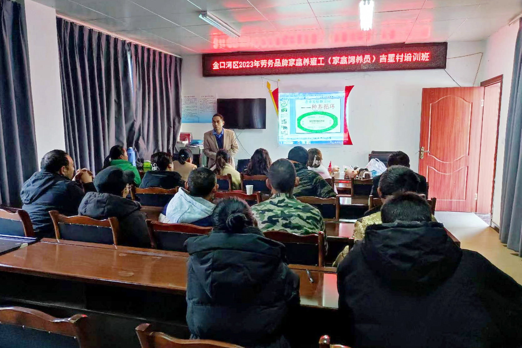 培训由峨边民生职业技能培训学校组织,张永华(研究生、高级畜牧师)主讲,村干部及村民20余名群众参加了本次培训。