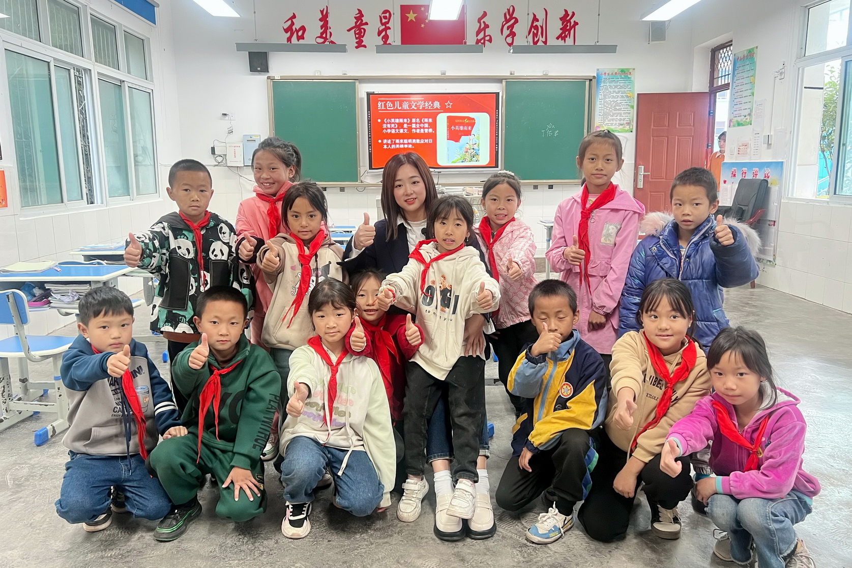 活动中,王鹏老师带领全体同学合唱了闻名全国的歌曲《歌唱二小放牛郎》,在经典诵读环节,带领孩子们诵读了红色儿童文学作品《小兵张嘎》《小英雄雨来》《鸡毛信》《闪闪的红星》中的多个经典片段,介绍了王二小、张嘎、雨来、海娃等民族小英雄,在阅读赏析和讨论环节,纷纷表达了对民族小英雄机智、勇敢和大无畏精神的敬佩,一定会珍惜当下先辈们用生命换来的和平,努力学习成才,成为一名合格的社会主义建设者。