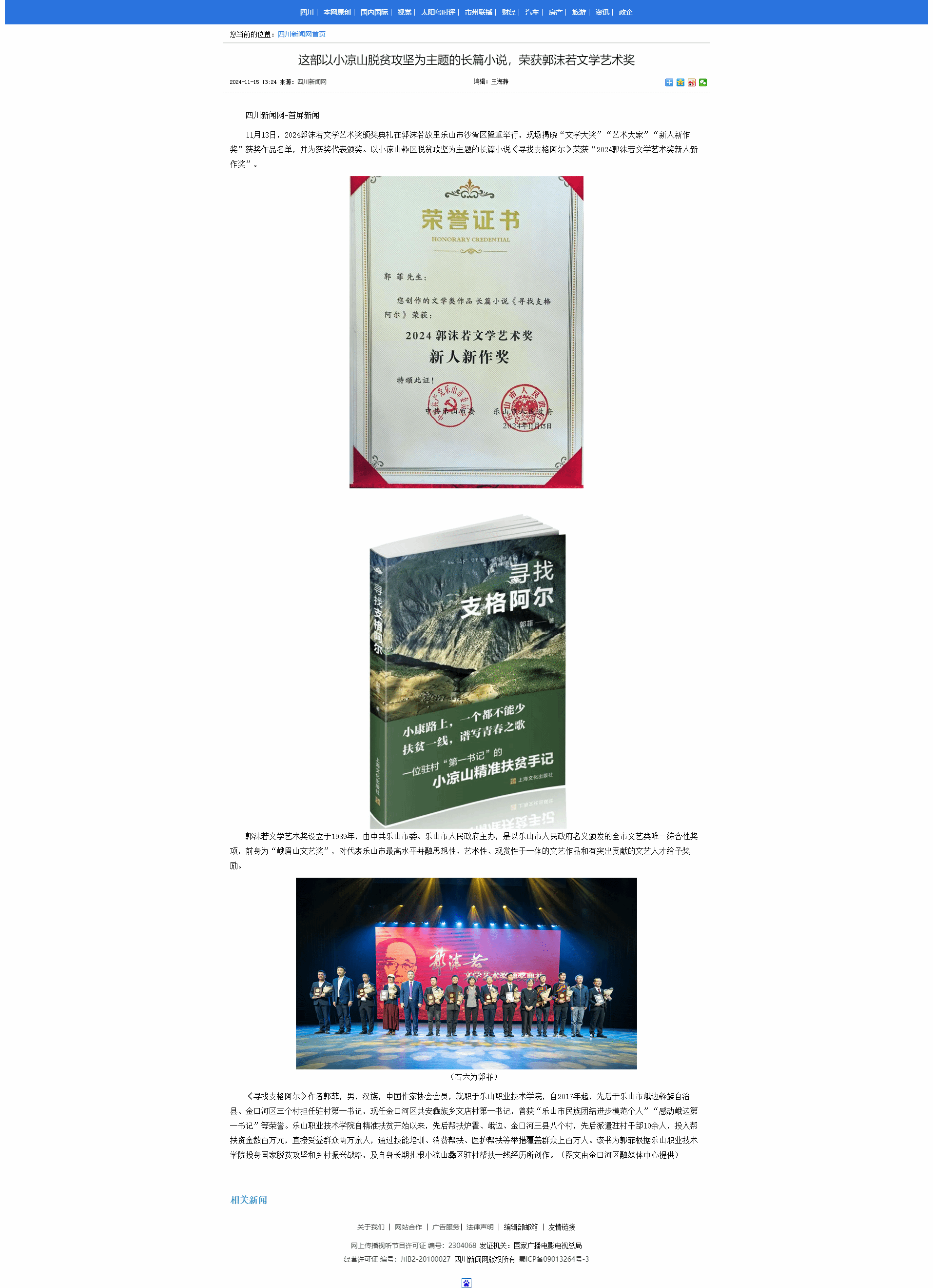 四川新闻网:这部以小凉山脱贫攻坚为主题的长篇小说,荣获郭沫若文学艺术奖