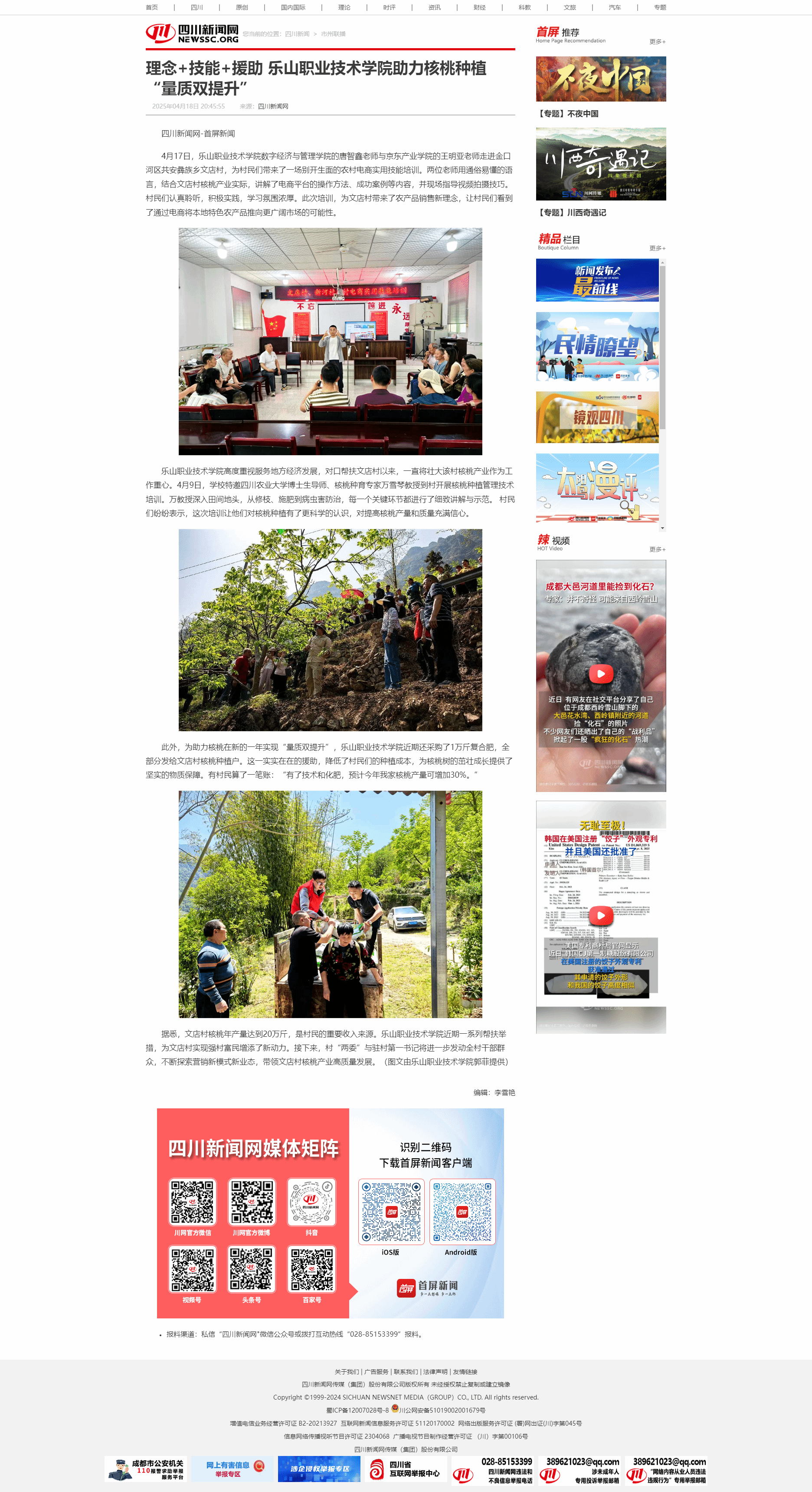 四川新闻网:理念+技能+援助 BV伟德官方网站助力核桃种植“量质双提升”