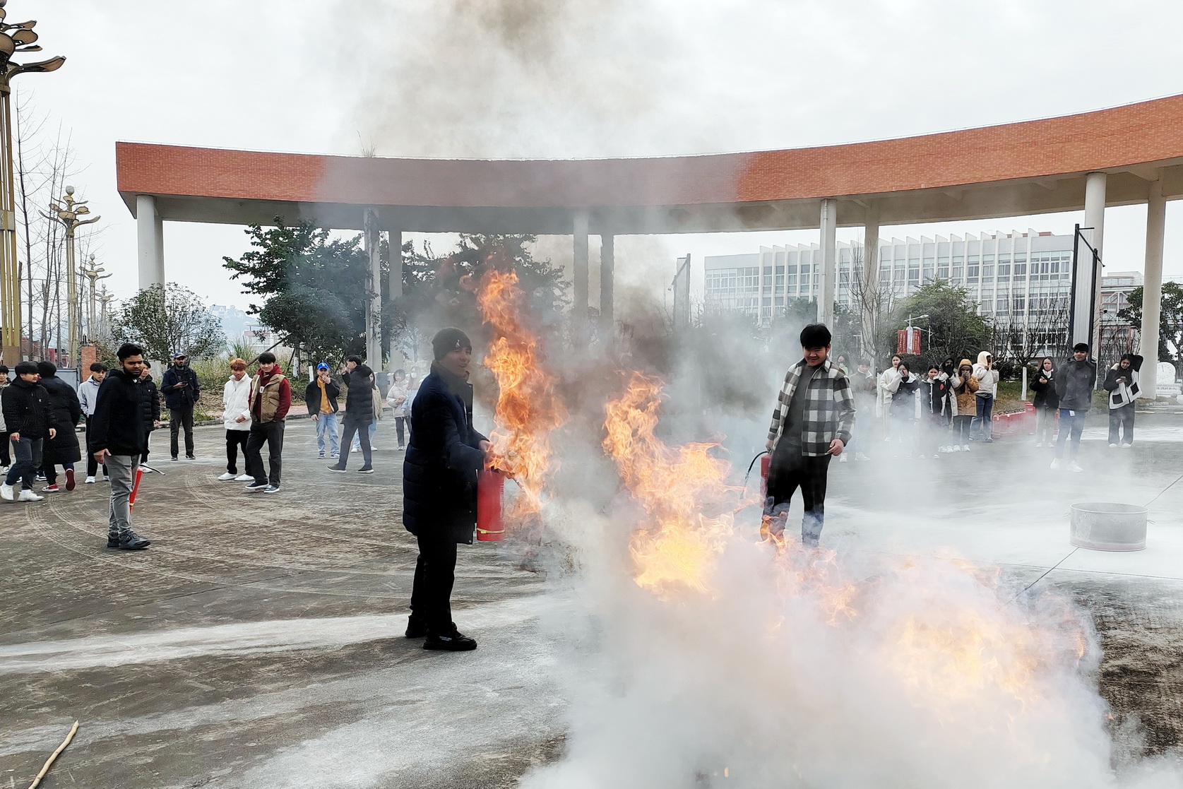 安全检查结束后,保卫处会同国际学院组织全体留校留学生开展了消防安全培训,重点讲解了灭火器材的使用方法,并给大家做了现场示范。在场的留学生们热情高涨,在工作人员的指导下,积极参与实际操作练习。