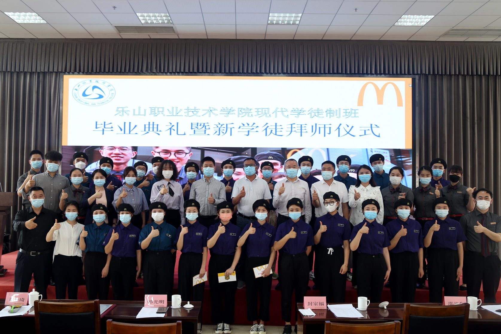 在新学徒拜师仪式上,麦当劳现代学徒制班学生立志不负企业、学院和社会的期望,不忘初心、砥砺前行,德技并修、精进技艺,不负韶华。