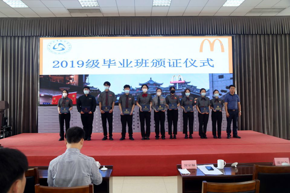 近日,学院财经管理系在学术交流中心3004会议室,通过线上直播方式举办了麦当劳现代学徒制班2019级毕业典礼暨2021级新学徒拜师仪式。四川金拱门食品公司营运总监韩光明、人力资源部负责人刘仕琦等企业领导和师傅,学院副院长封家福、财经管理系主任邵其会、系总支副书记(主持总支工作)易新忠以及部分师生参加。