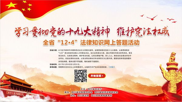 今年是“七五”普法的第二年,为学习贯彻党的十九大精神,维护宪法权威,促进全面依法治国、依法治校。在12月4日国家宪法日,根据《乐山市关于开展2017年“12.4”国家宪法日法治宣传教育活动的通知》精神,学院各机关处室、系部积极组织师生登陆“四川普法网”“法治乐山网”进行网上答题活动。