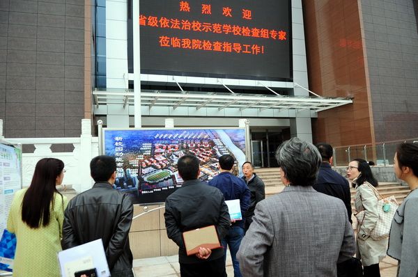 省教育厅检查组专家在学院党委书记蹇路,党委副书记、纪委书记陈芝海,副院长雷永,院长助理程小平的陪同下参观了学院新校园,考察学院依法治校校园教育宣传环境。